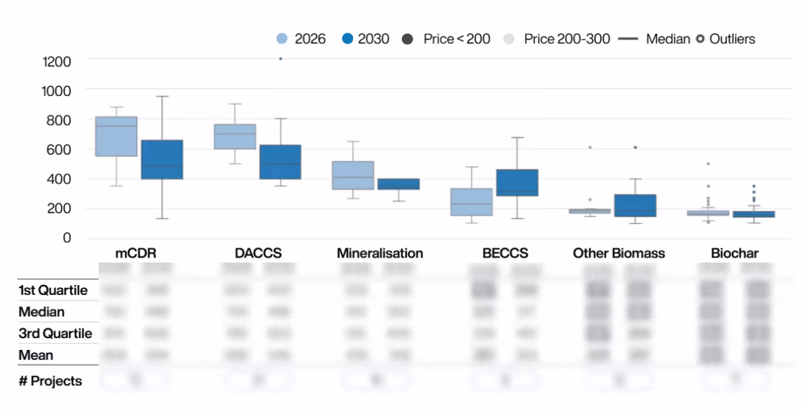 However, it is important to note that this remains an early stage market, with significant room for evolution. While mature pathways like Biochar show signs of convergence, MRV methodologies, quality benchmarks, and regulatory frameworks continue to develop, influencing price strategies adopted by different suppliers.
